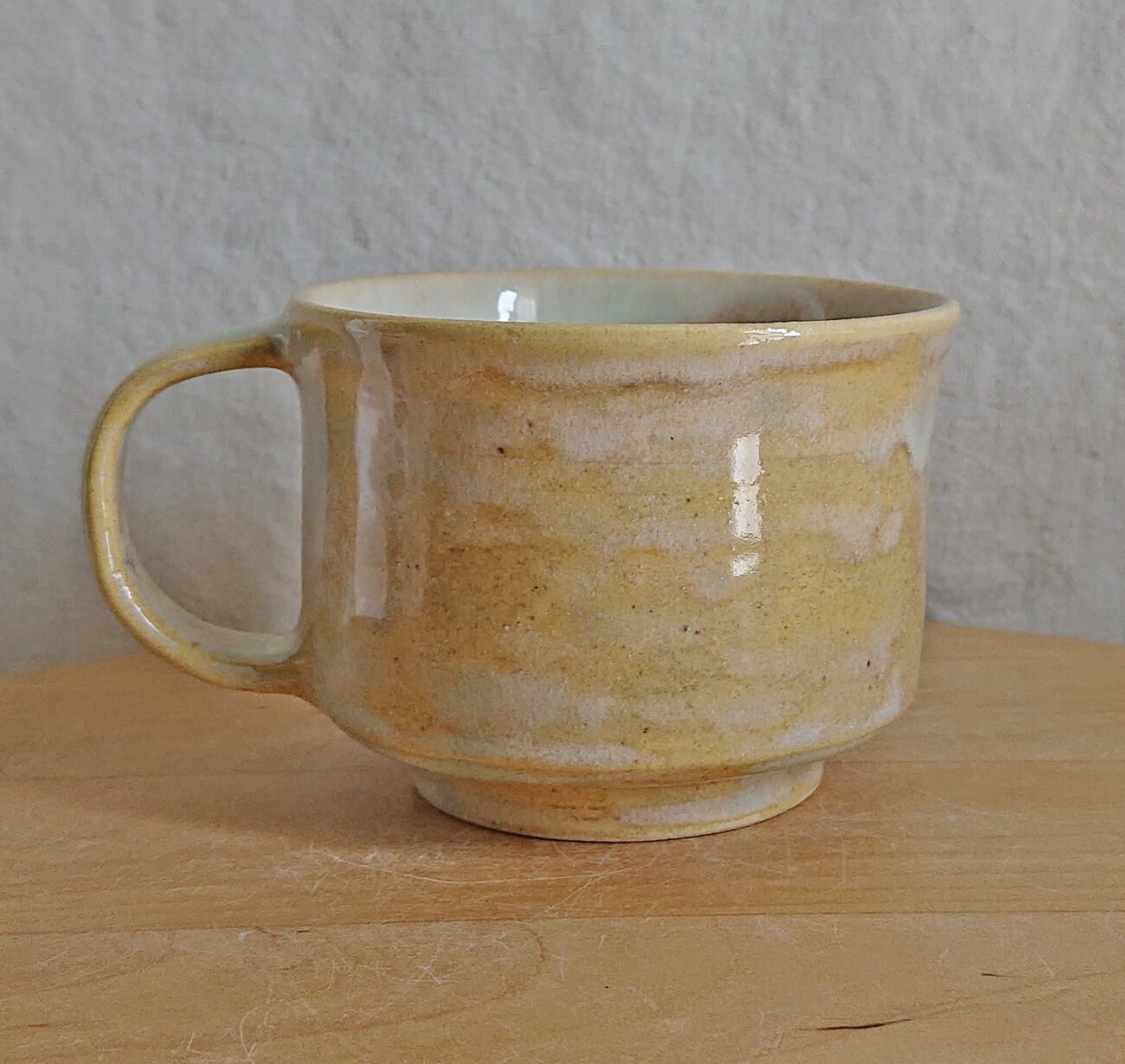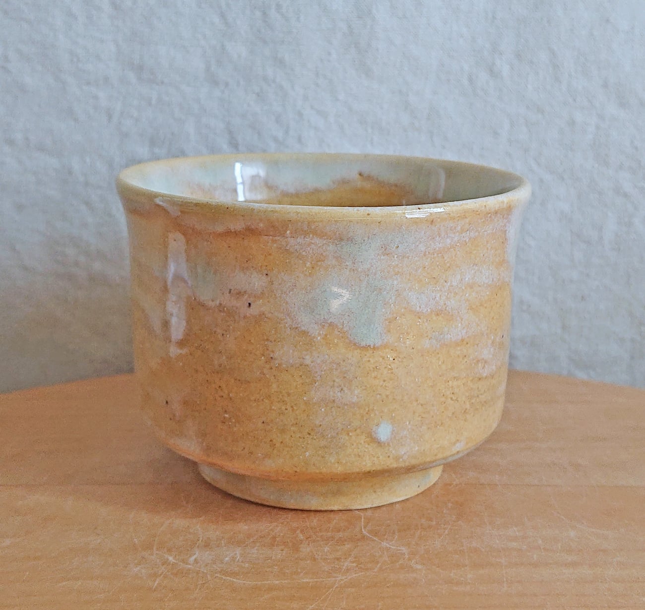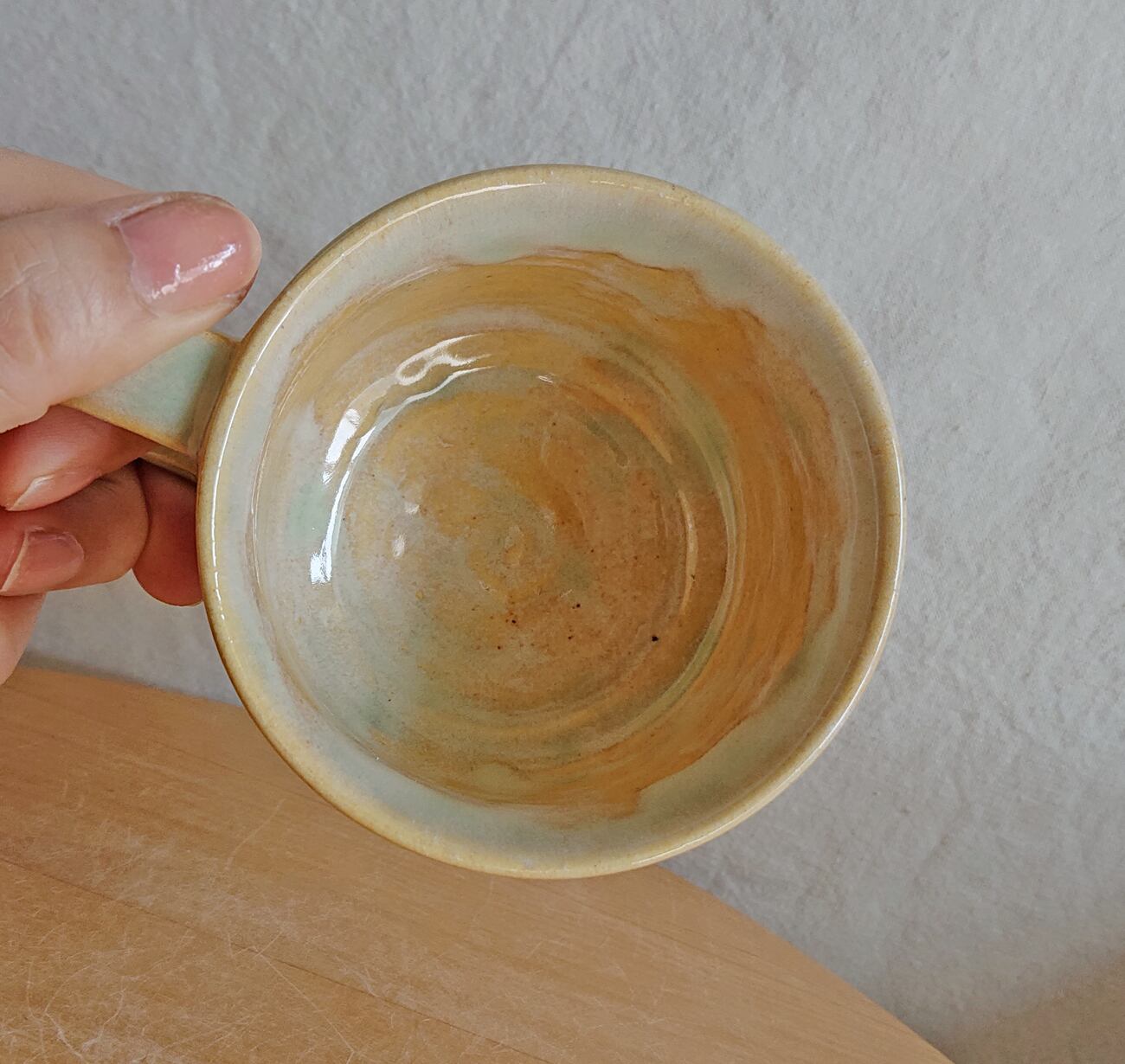 水色~黄色のグラデーションの出る釉薬をかけたカップです。