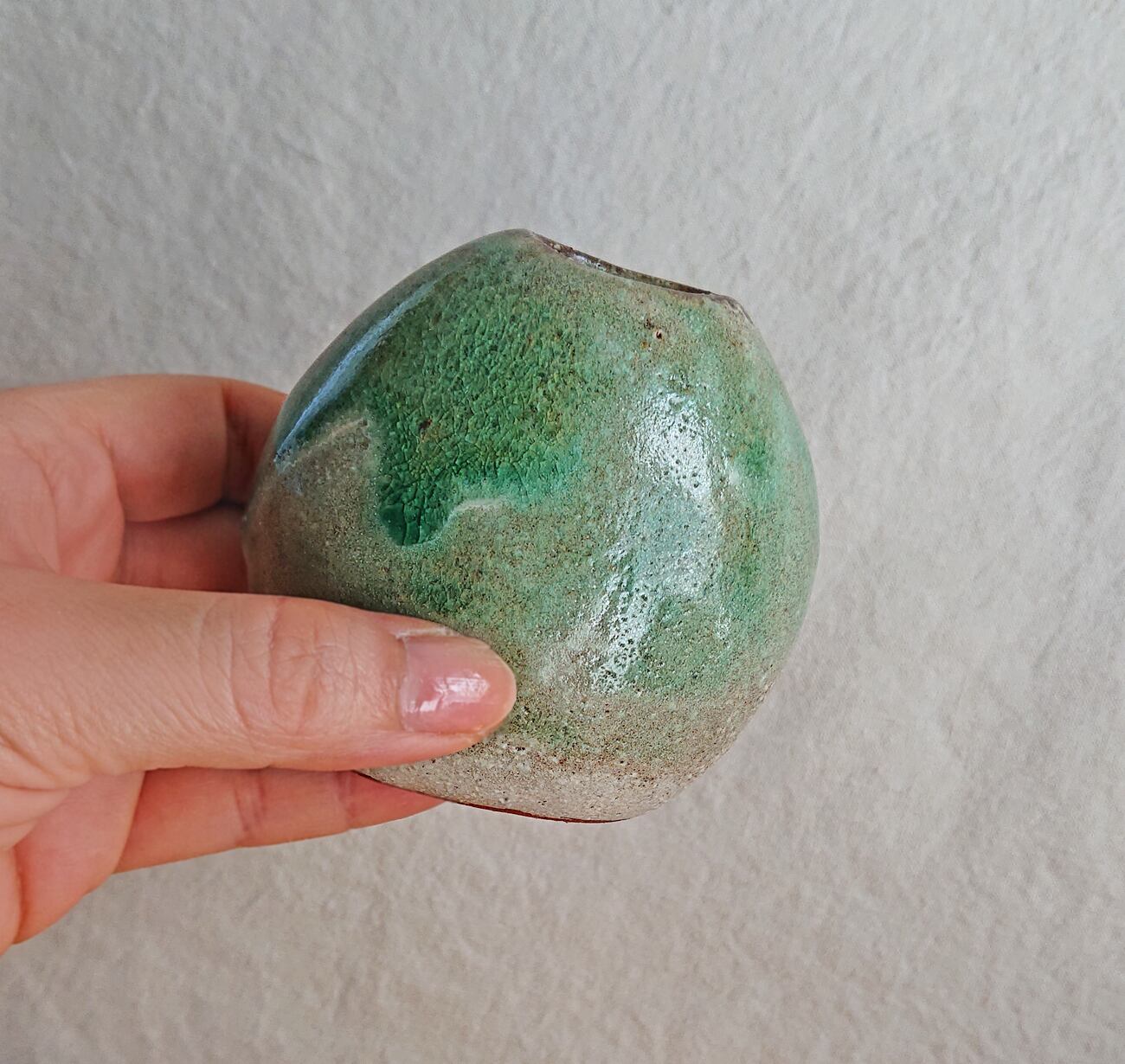 ベースが色の濃い赤土のため、和風の緑色に焼けました。