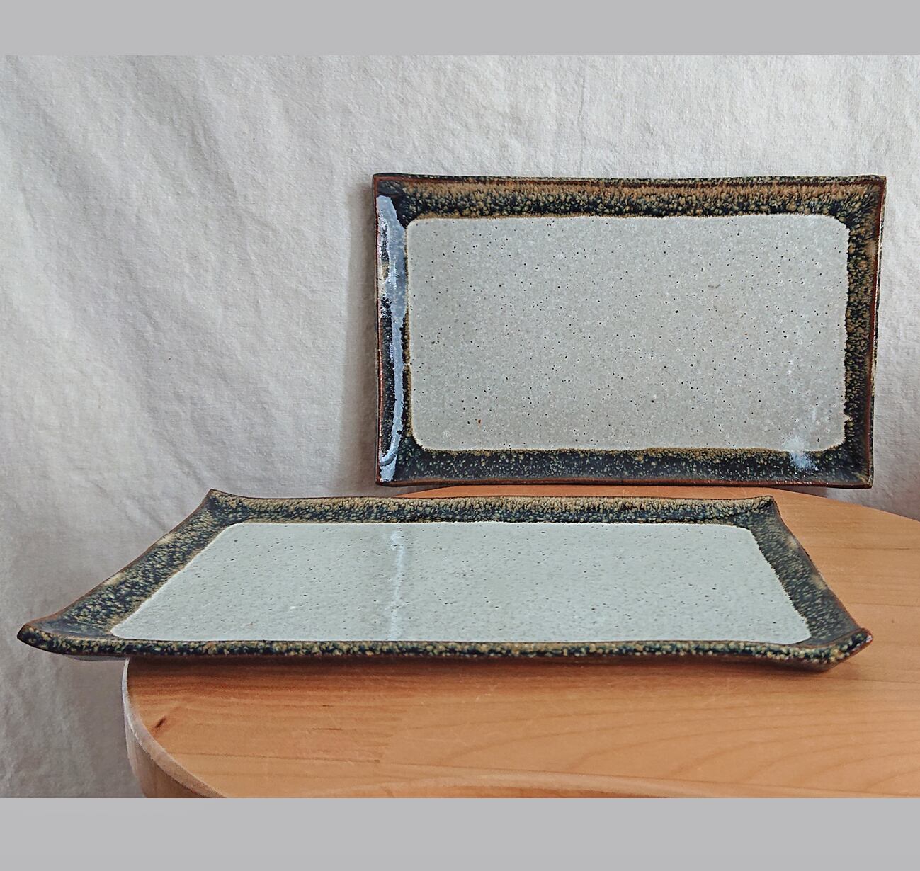 ツヤを抑えた釉薬を全体にかけてから四辺に黒い釉薬を重ねがけしました。
