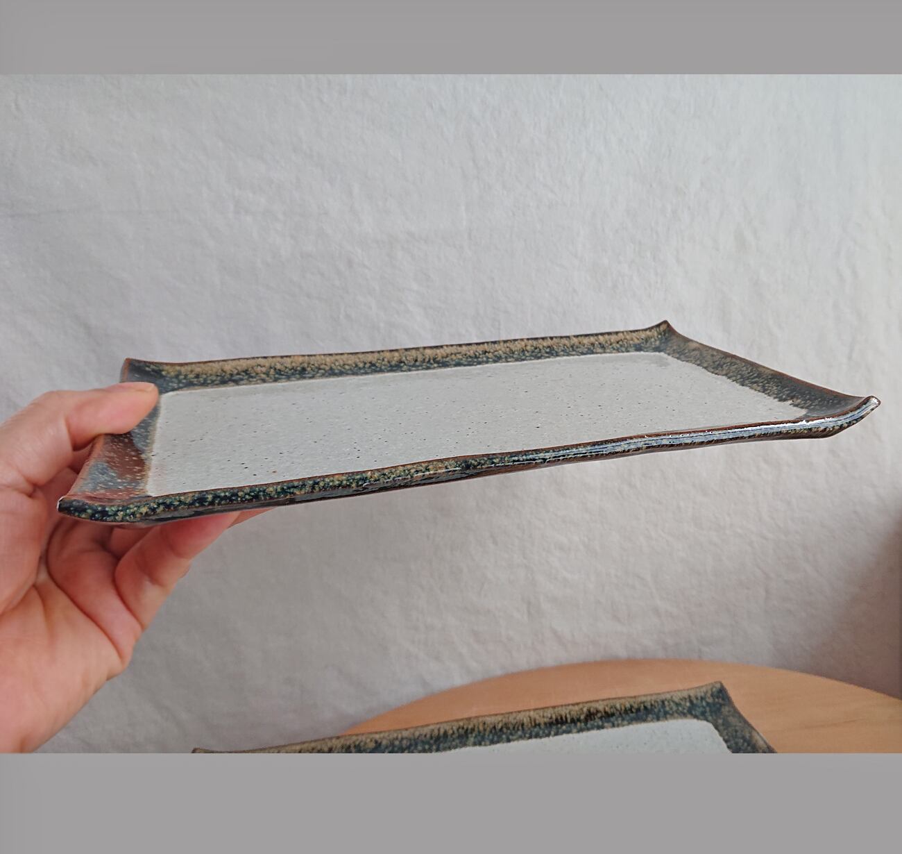 たたらという技法で作った長方形のお皿です。