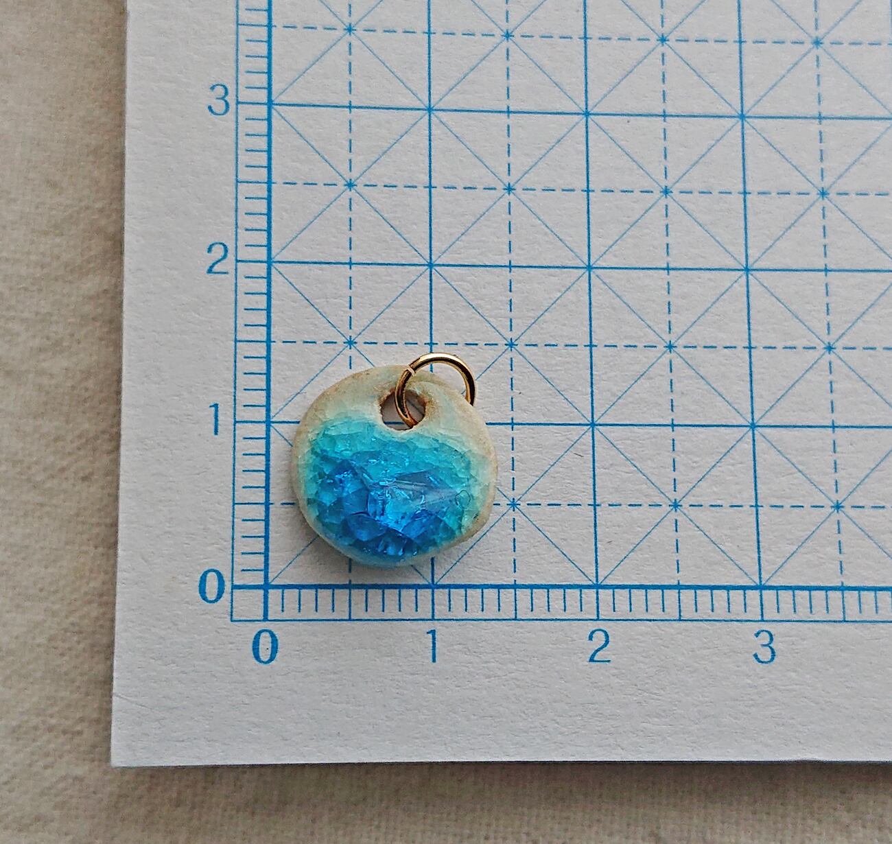 控えめな大きさで合わせやすく、鮮やかなブルーと透明感がきれいです。