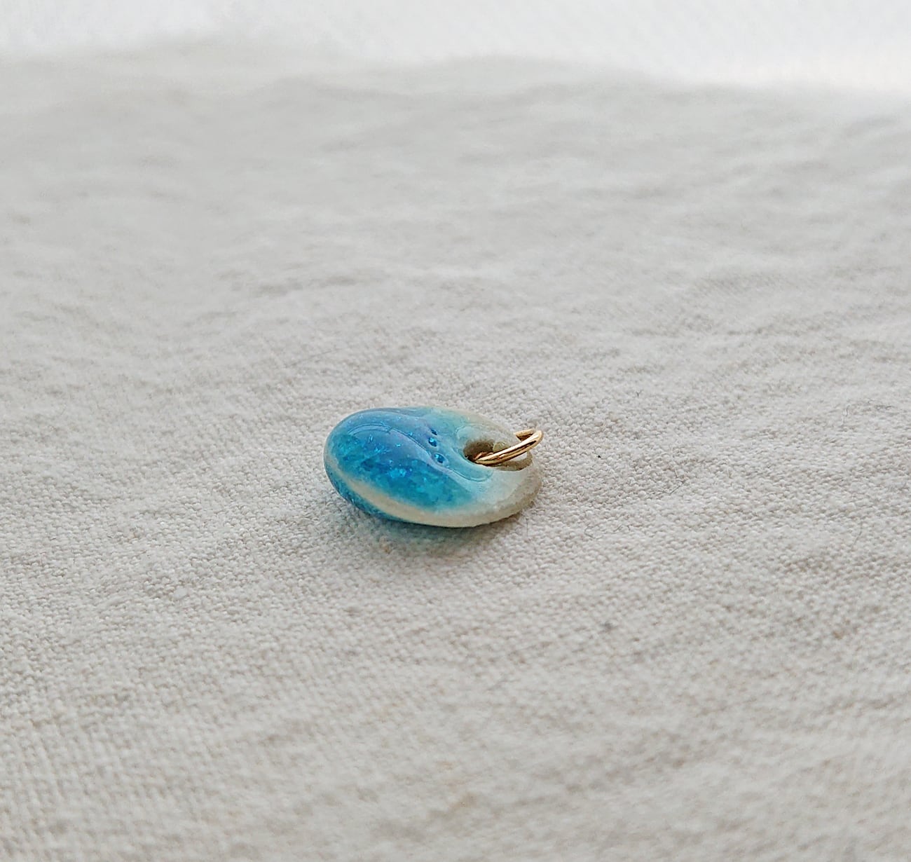 控えめな大きさで合わせやすく、鮮やかなブルーと透明感がきれいです。