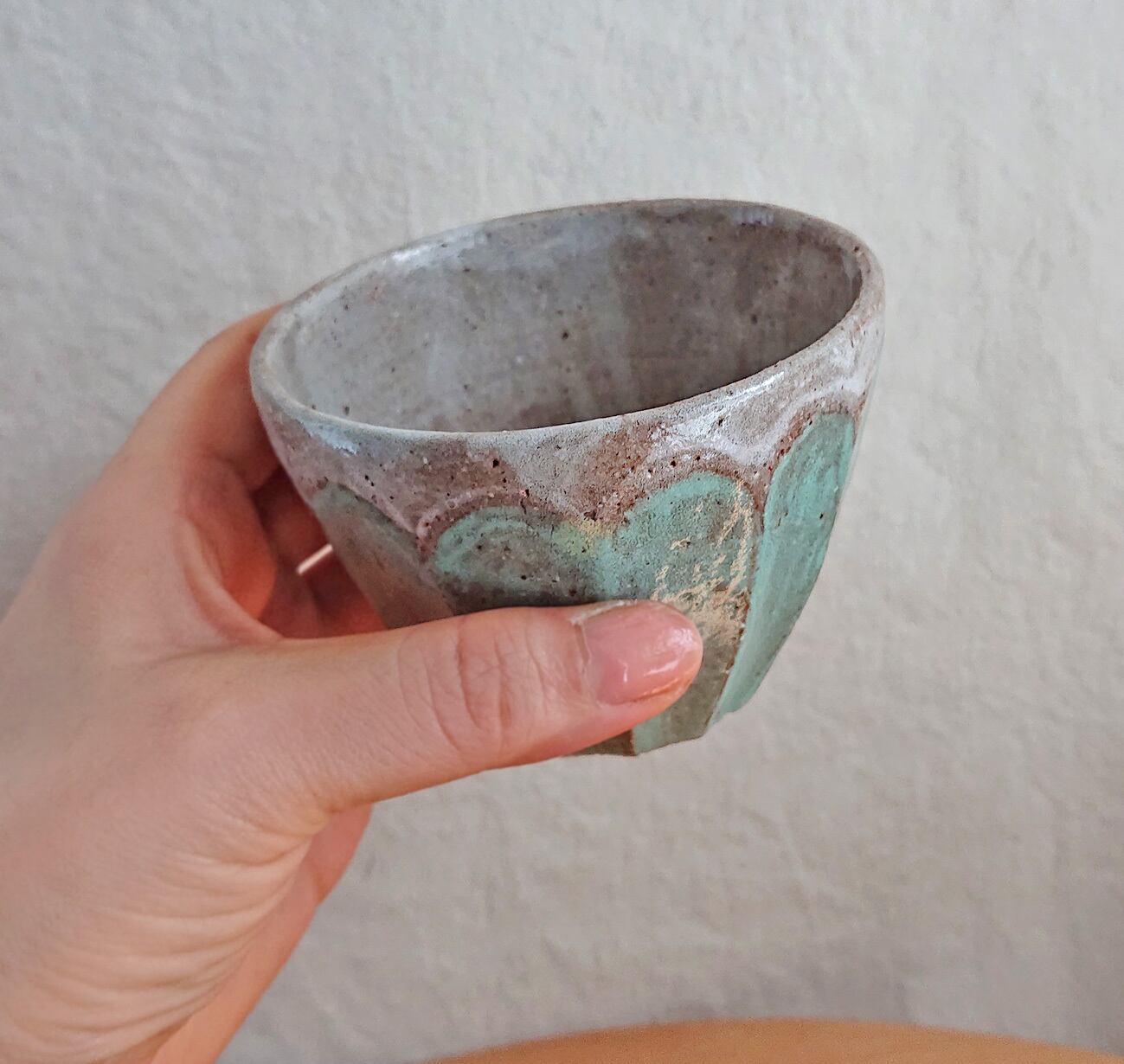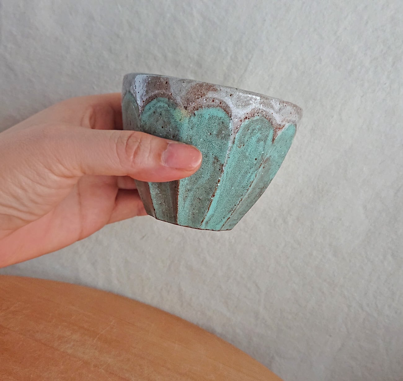 アメリカ製のSC釉という釉薬を筆塗りしたカップです。