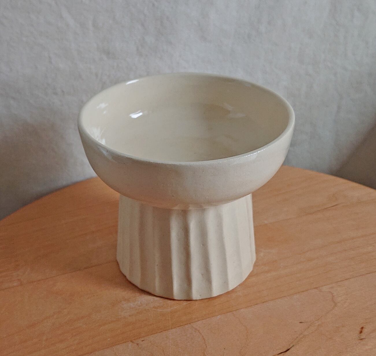脚の部分にしのぎの削りを入れ、全体に透明釉を塗っています。