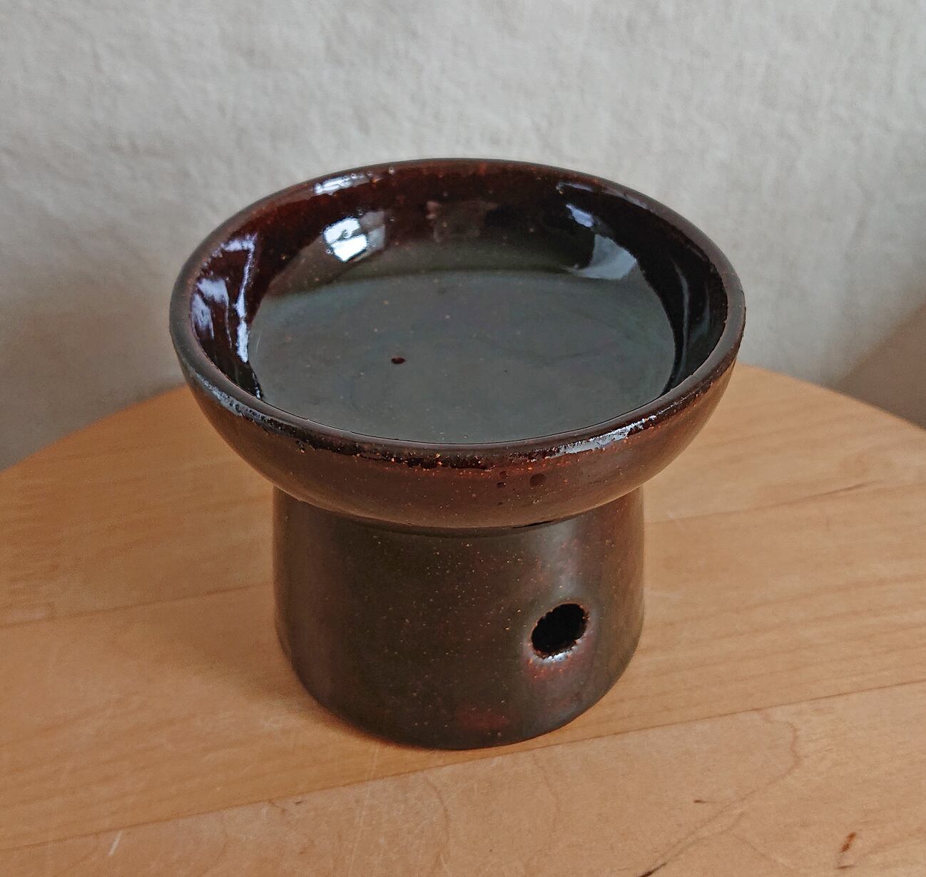 粘土は赤土で全体に茶色のアメ釉をかけています。