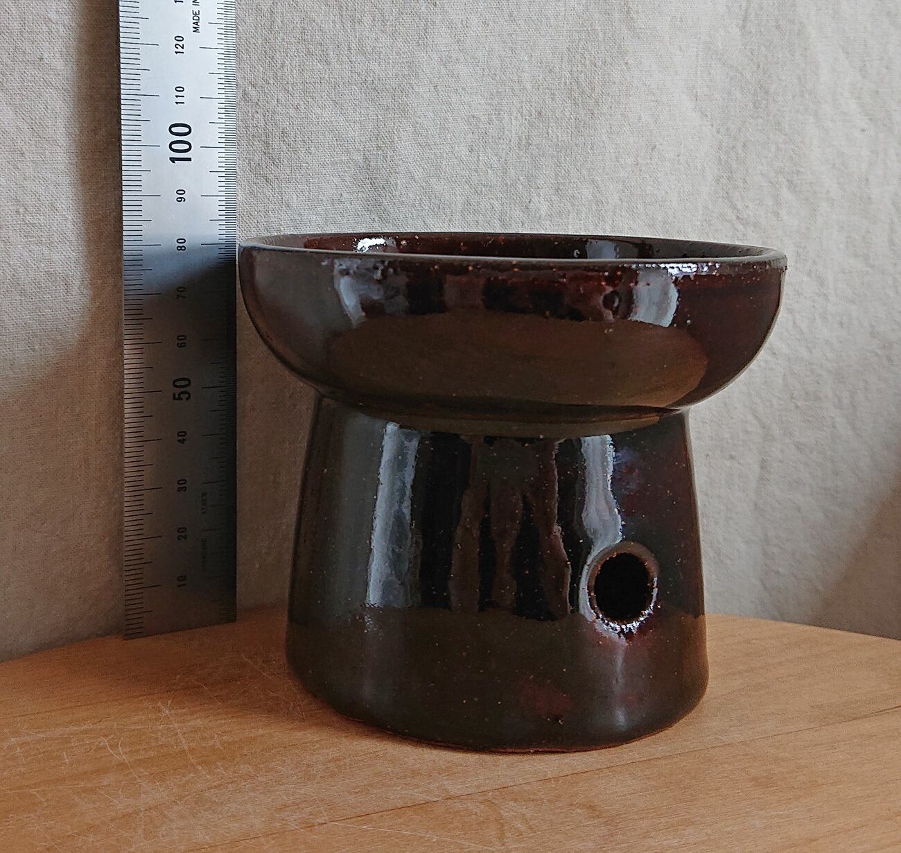 黒に近い、つやのある濃い茶色に焼きあがりました。