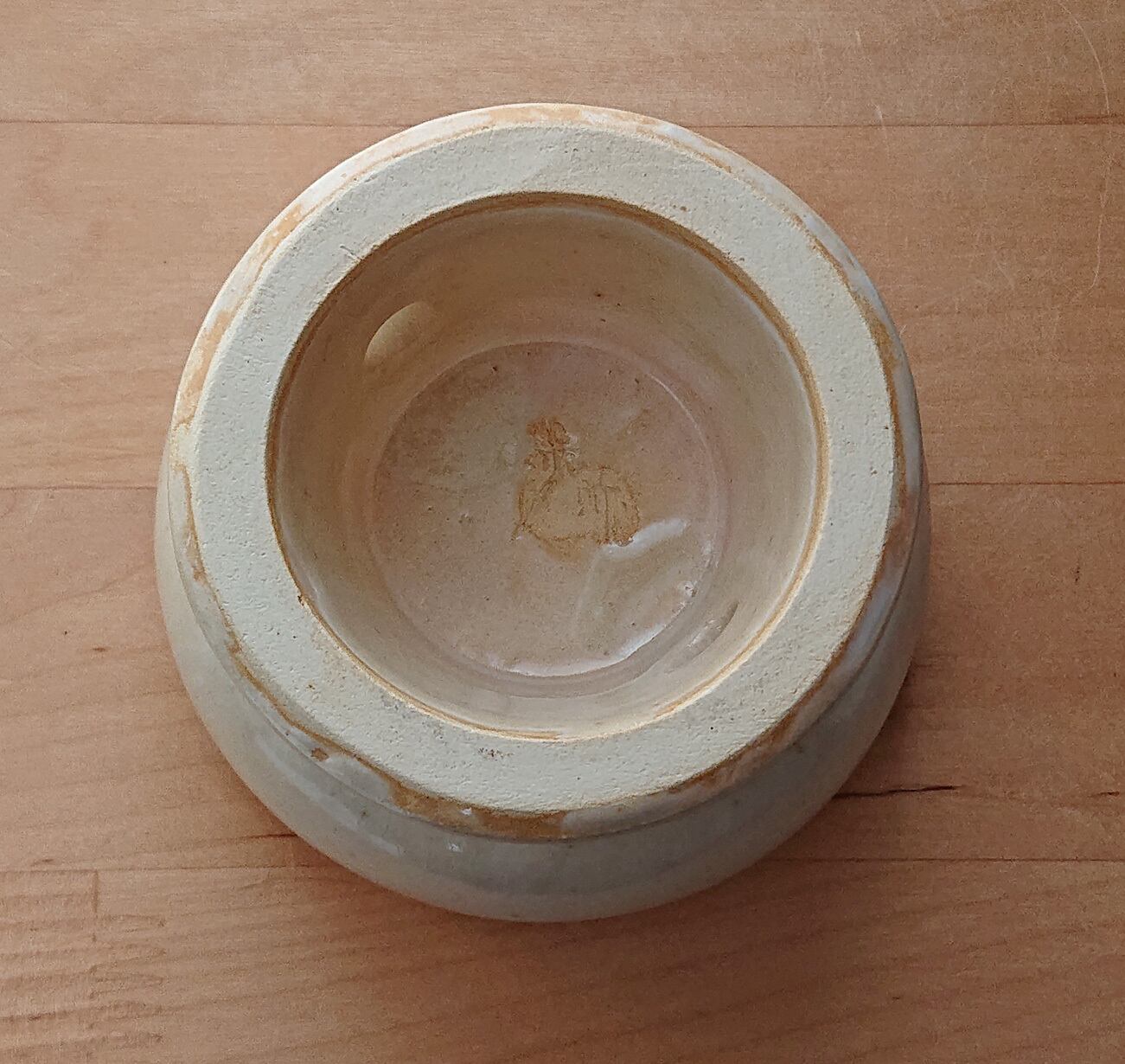全体にクリーム色のマット系の釉薬をかけてから、外側につやのある白い釉薬をかけています。